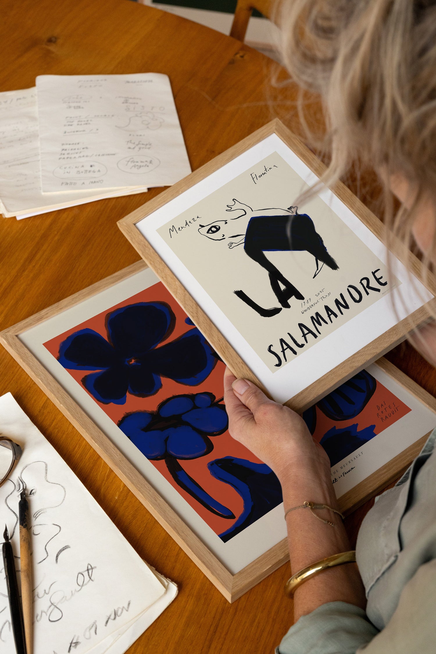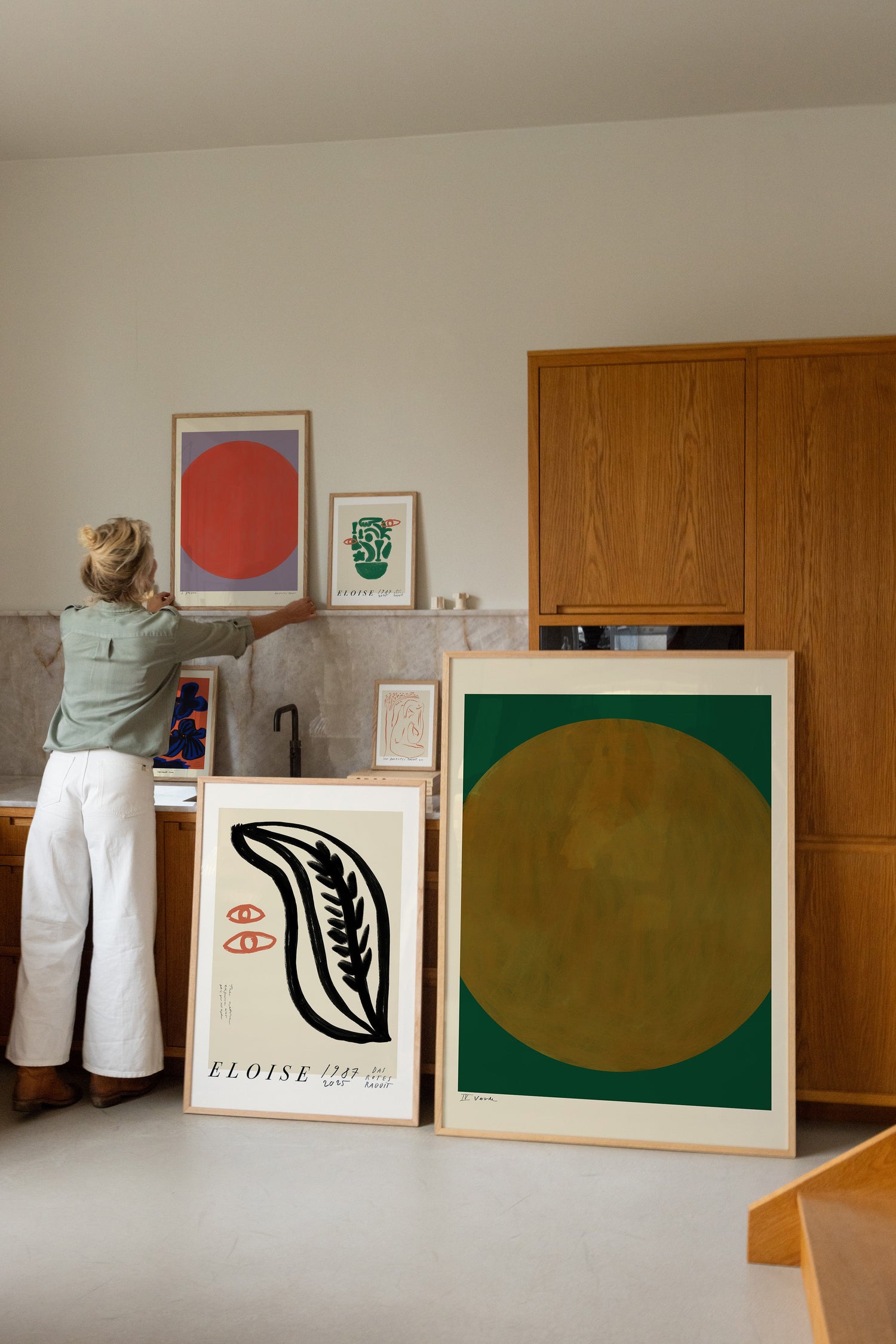 Sarah arbejder i krydsfeltet mellem det spontane og det strukturerede. Hvert værk fungerer som et statement piece – eller i samspil med de øvrige værker. Sammen skaber de et fleksibelt visuelt udtryk med mange mulige kombinationer, hvor farver og former bygger videre på hinanden. De fem grundidéer – nye begyndelser, krop, rødder, intuition og perspektiv – fungerer som en rød tråd gennem serien. Det giver en kollektion, der føles levende, taktil og nutidig.