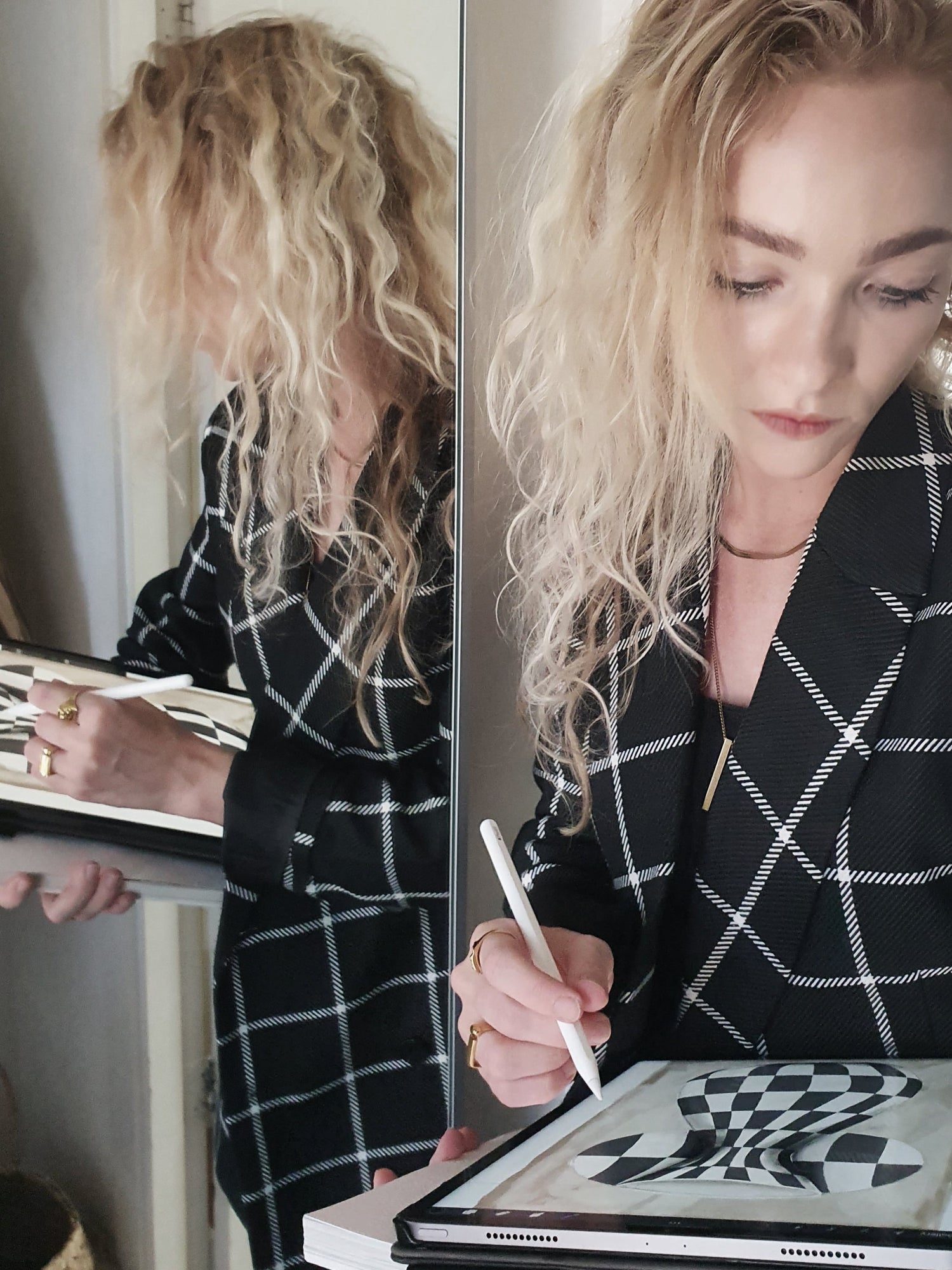 Opvokset i Cape Town og med en baggrund i modedesign, har Karla altid været omgivet af kreative påvirkninger. Hendes rejser, fra de kroatiske ruiner til de græske gulve, har givet hende et væld af visuelle indtryk, som hun bringer til live gennem sin kunst. Hendes arbejdsproces er intuitiv og fri, hvor hun arbejder med fotografier og eksperimenterer med mønstre, hvilket gør hvert værk unikt og fyldt med mening.
