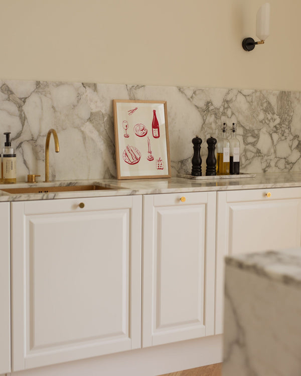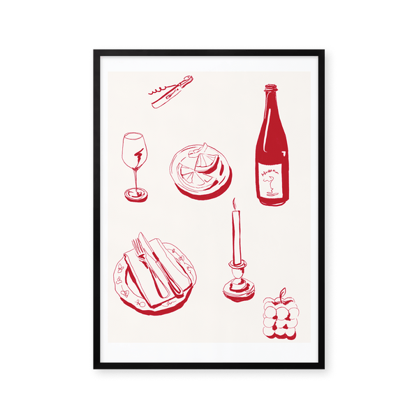 Kunstplakaten: "deconstructed dinner - cream" af kunstneren Kiki Makes er en illustreret plakat, der er kurateret for Peléton. Dette værk blev skabt digitalt ved hjælp af minimalistiske farver og linjer.