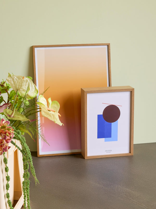 Vores rammer er fremstillet af materialer i høj kvalitet og fås i massiv egetræ, mørkbejdset egetræ og sortmalet fyrtræ. Alle rammer leveres med ægte glas, mens de største størrelser (70 × 100 cm og 100 × 140 cm) har 2 mm akrylglas, der ligner glas, men er lettere og mere brudsikkert.