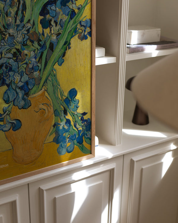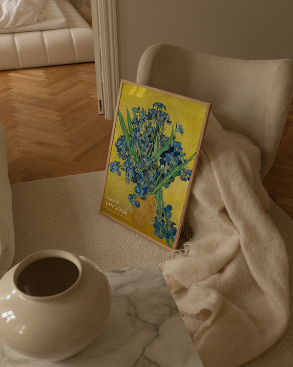 Kunstplakaten: "Irises" af kunstneren Vincent van Gogh er en malet plakat, som Peléton har genskabt. Denne plakatserie med Vincent van Goghs kunstplakater er kendetegnet ved hans kunstværker med kraftige farver og dramatisk, impulsivt og ekspressivt penselarbejde. Denne plakat er en del af Peleton's vintage kollektion med museumslayout. Kunstplakaten er produceret på kvalitetspapir med lang levetid, høj høj gennemtræk og detaljeret farvegengivelse.
