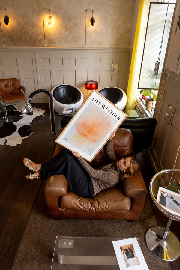 Kunstplakaten "Lave" af Lot Winther er en malet plakat, kurateret særligt til Peléton. Motivet er en del af en ny kollektion af farveeksplosioner, inspireret af solens farveuniverser og varme stemninger.