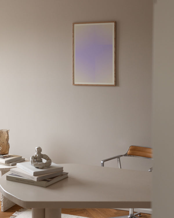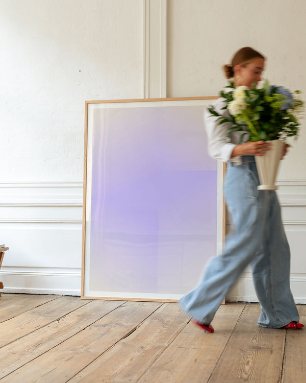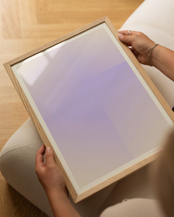 Kunstplakaten: “Lavender” af kunstnerne Mie & Him er en grafisk illustreret plakat, der er eksklusivt lavet til Peléton. Det har været betydningsfuldt for dem, at plakaten står til fri fortolkning. Dette værk er en del af en samling af eksklusive kunstplakater, der udtrykker minimalisme og enkelhed.