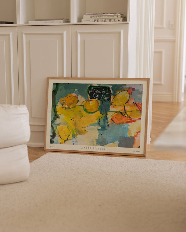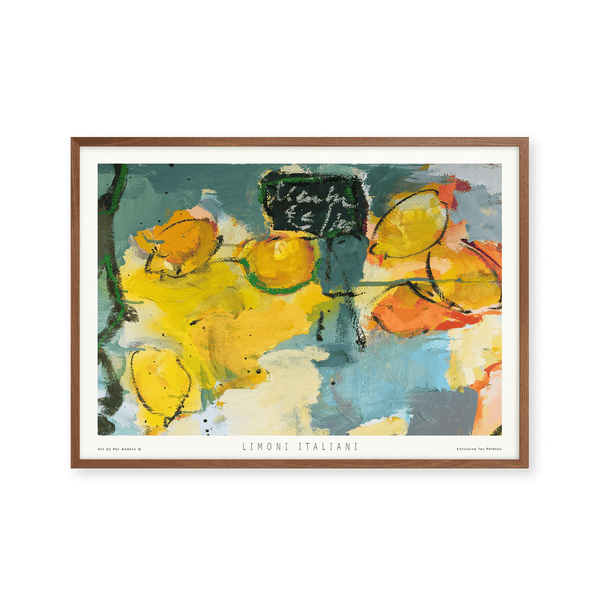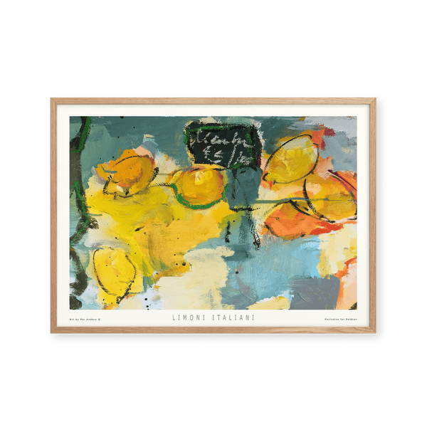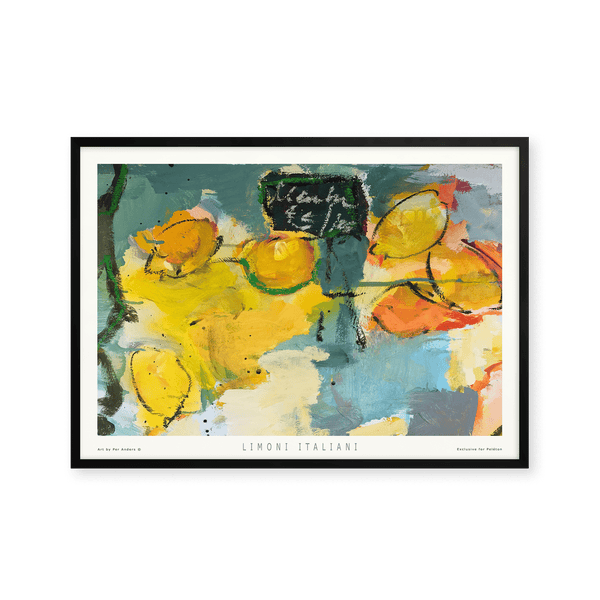 Kunstplakaten: “Limoni Italiani” af kunstneren Per Anders er en malet og grafisk plakat der er lavet eksklusivt til Peléton. Dette er en højkvalitets reproduktion af det originale kunstværk med et farverigt museums layout. Det har været betydningsfuldt for Per Anders, at plakaten står til fri fortolkning.