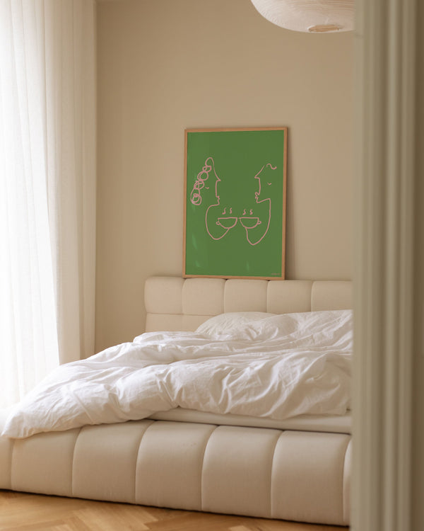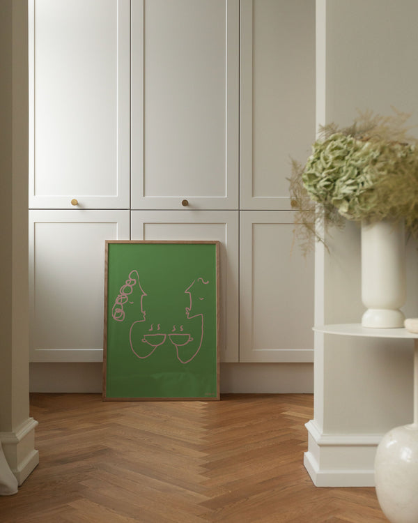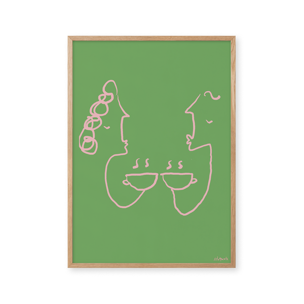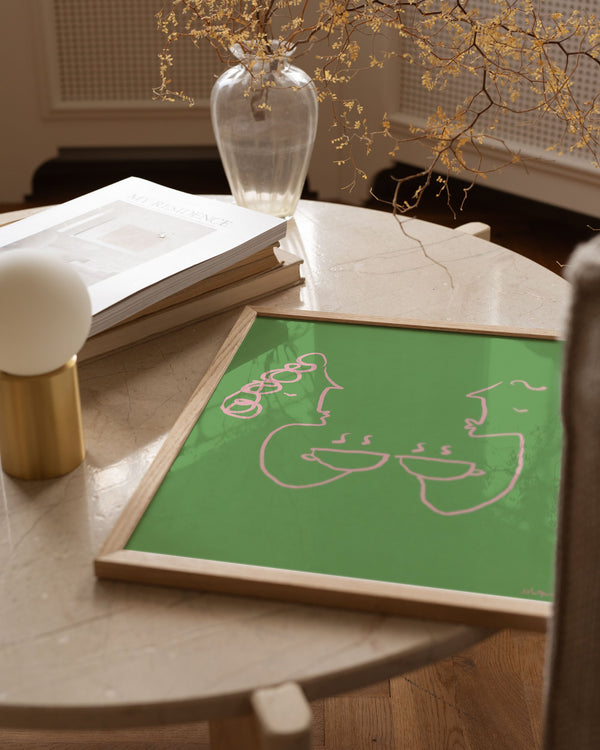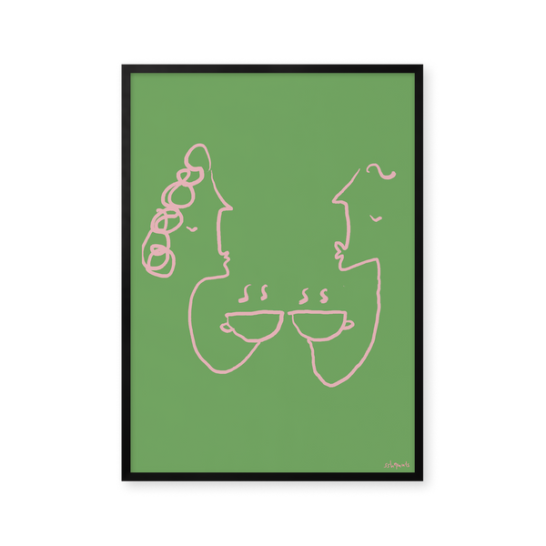 Kunstplakaten "MORNING COFFEE" af kunstneren Ruby Hughes er en illustreret plakat, der er kurateret for Peléton. Kunstplakaten er produceret på kvalitetspapir, med lang levetid og detaljerig farvegengivelse.