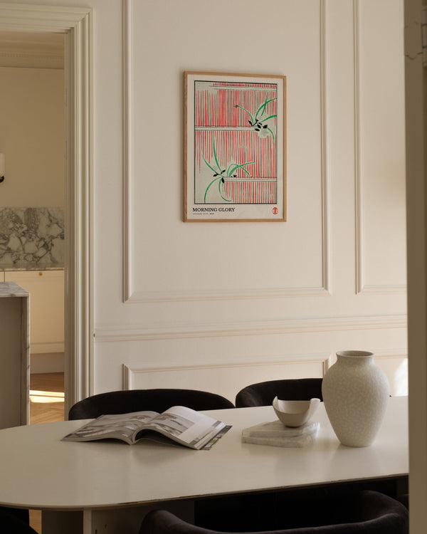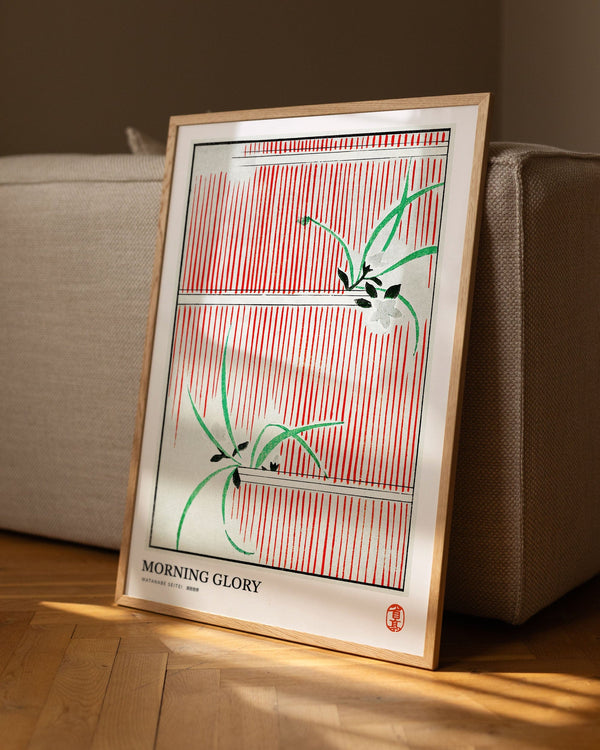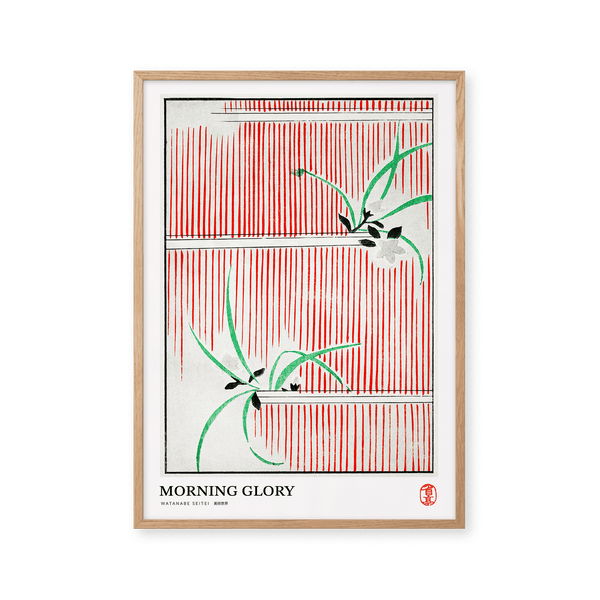 Kunstplakaten: "Morning glory" af kunstneren Watanabe Seitei er en plakat, som Peléton har genskabt ud fra hans ikoniske træsnit. Denne plakatserie med Watanabe Seitei kunstplakater tager udgangspunkt i hans mest kendte værker. Denne plakat er en del af Peleton's vintage kollektion med museumslayout. Kunstplakaten er produceret på kvalitetspapir med lang levetid, høj høj gennemtræk og detaljeret farvegengivelse.