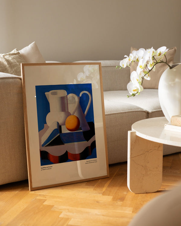 Kunstplakaten: “Opstilling med kander” af kunstneren Vilhelm Lundstrøm er en malet plakat, der er genskabt af Peléton. Denne plakat serie med Vilhelm Lundstrøms eksperimenterende og geometriske kunstplakater, er karakteriseret ved hans farverige men simple stil. Denne plakat er en del af Pelétons vintage kollektion med museums layout. Kunstplakaten er produceret på kvalitetspapir, med lang levetid, høj gennemtræk og detaljerig farvegengivelse.