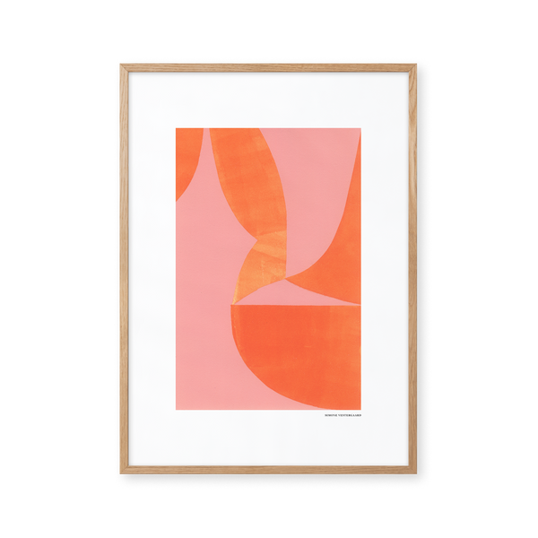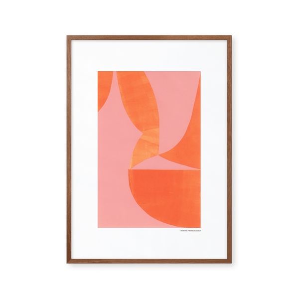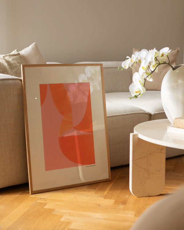 Kunstplakaten “Orange rotation 1” af arkitekt og kunstner Simone Vestergaard er en trykt plakat, der er lavet eksklusivt til Peléton. Plakaten er en del af en serie af abstrakte plakater, der udforsker relationen mellem form og farve, stilhed og dynamik, tæthed og transparens. Derudover fokuserer hver plakat i serien på principper som tilføjelser, forskydninger, rotationer og spejlinger.