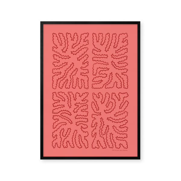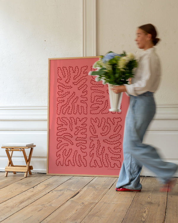 Kunstplakaten: “Otis Pink” af kunstnerne Mathilda Boalawong er en grafisk illustreret plakat der er eksklusivt lavet til Peléton. Det har været betydningsfuldt for dem, at plakaten står til fri fortolkning. Dette værk er en del af en samling af eksklusive kunstplakater der udtrykker minimalisme og enkelhed.