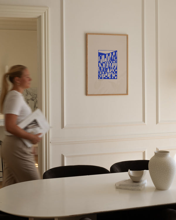 Kunstplakaten: “Papercut 01 - Blue” af kunstneren Little Detroit er en illustreret plakat der er lavet eksklusivt til Peléton. Det har været betydningsfuldt for Little Detroit, at plakaten står til fri fortolkning.