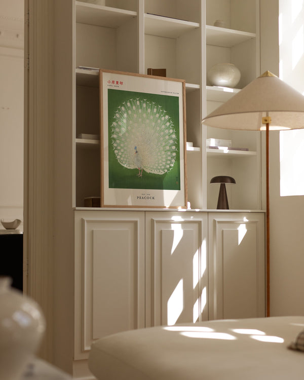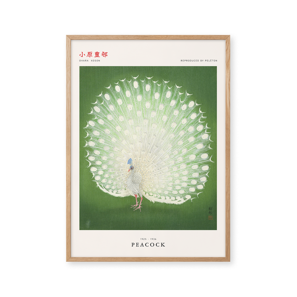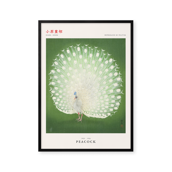 Kunstplakaten: "Peacock" af kunstneren Ohara Koson er en plakat, som Peléton har genskabt ud fra hans ikoniske træsnit. Denne plakatserie med Ohara Kosons kunstplakater tager udgangspunkt i hans berømte træsnit og malerier af fugle og blomster. Denne plakat er en del af Peleton's vintage kollektion med museumslayout. Kunstplakaten er produceret på kvalitetspapir med lang levetid, høj høj gennemtræk og detaljeret farvegengivelse.