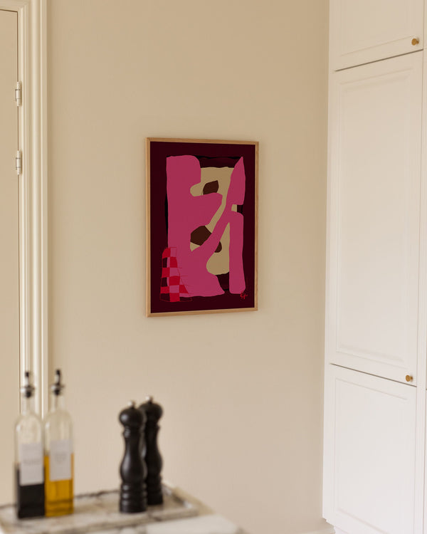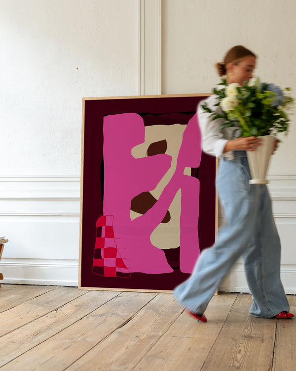 Karla Hymans kunstplakat “Picture Me Fervently" er en malet og grafisk plakat, der er lavet eksklusivt til Peléton. Hendes plakater kendetegnes ved deres simple men abstrakte stil.