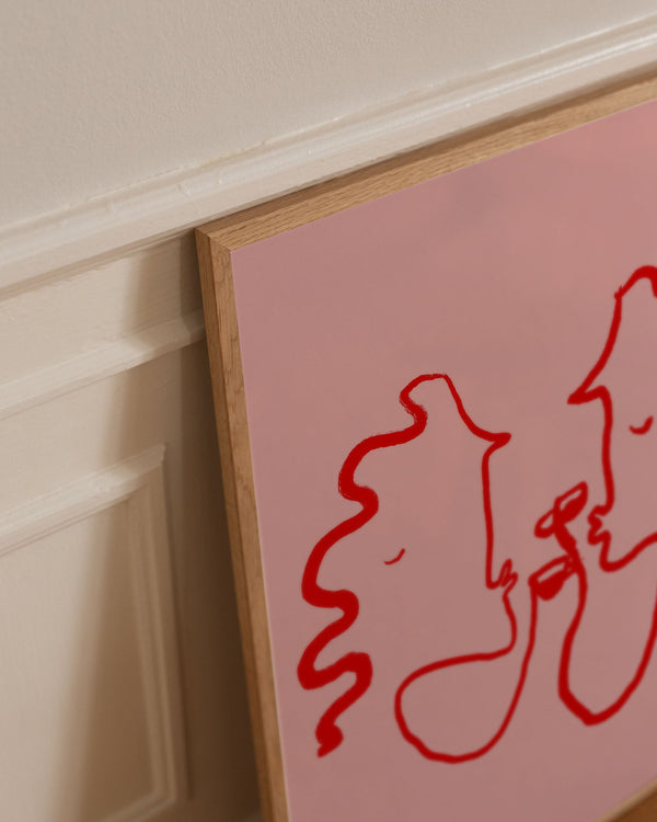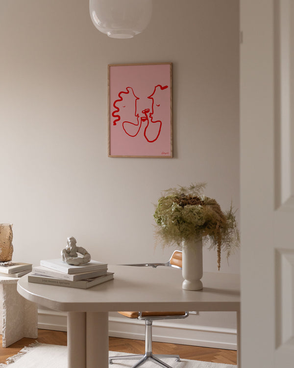 Kunstplakaten "PINK LOVERS" af kunstneren Ruby Hughes er en illustreret plakat, der er kurateret for Peléton. Kunstplakaten er produceret på kvalitetspapir, med lang levetid og detaljerig farvegengivelse.