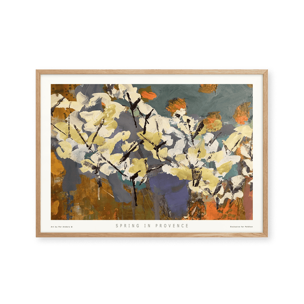 Kunstplakaten: “Spring In Provence” af kunstneren Per Anders er en malet og grafisk plakat der er lavet eksklusivt til Peléton. Dette er en højkvalitets reproduktion af det originale kunstværk med et farverigt museums layout. Det har været betydningsfuldt for Per Anders, at plakaten står til fri fortolkning.