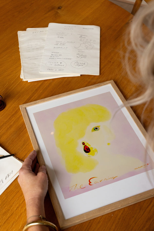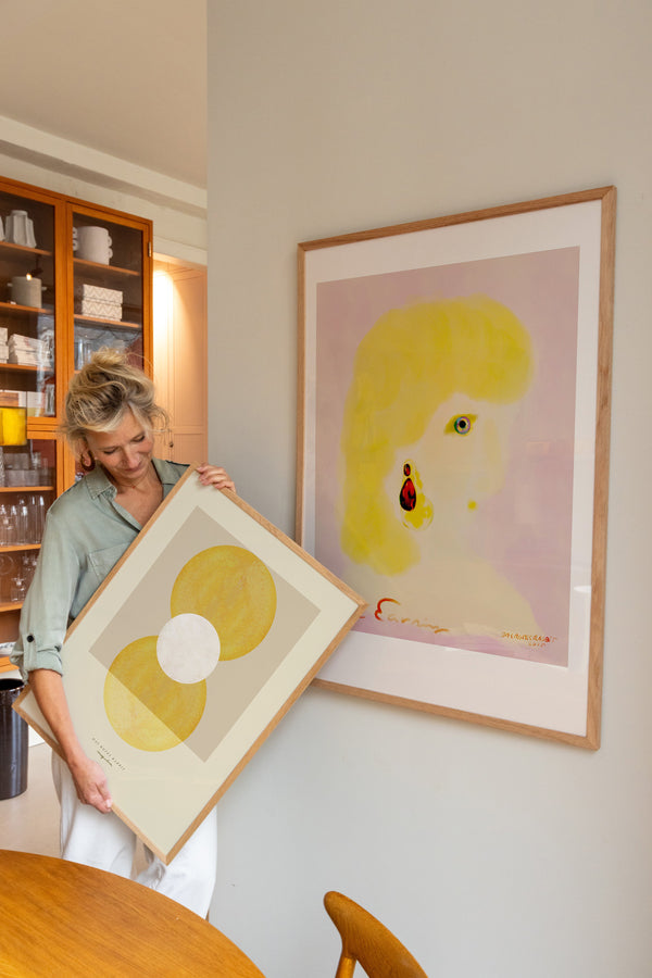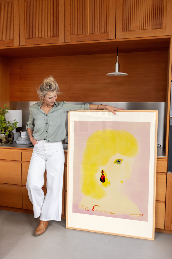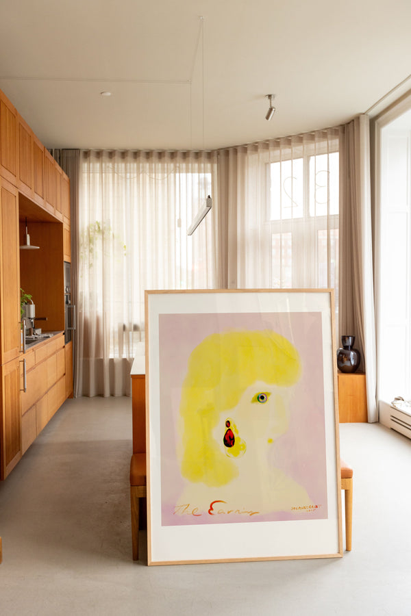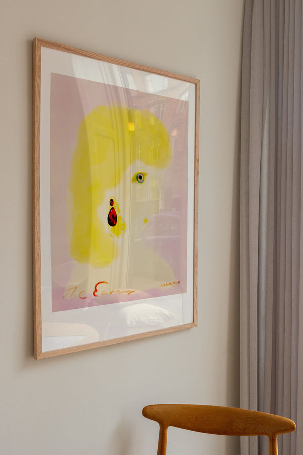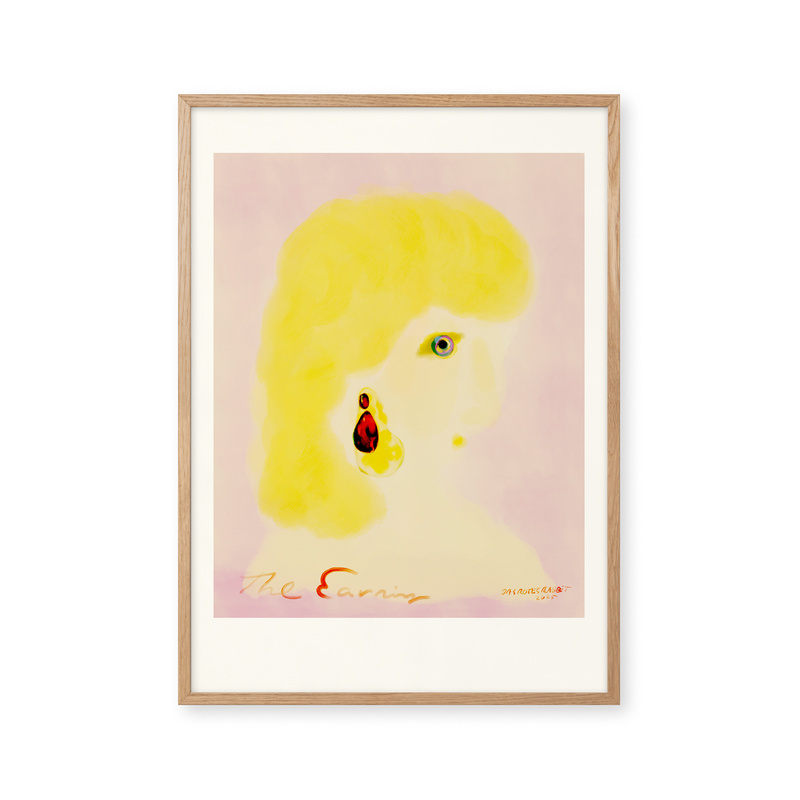 Kunstplakaten: "The Earring” er skabt af kunstneren Das Rotes Rabbit og er en del af en kunstserie eksklusivt lavet til Peléton. Serien har karakter og personlighed og fungerer perfekt som et statement piece eller i samspil med de øvrige værker i serien. Farverne og den minimalistiske stil smelter sammen og skaber et harmonisk udtryk, der tilføjer dybde og elegance til ethvert rum.