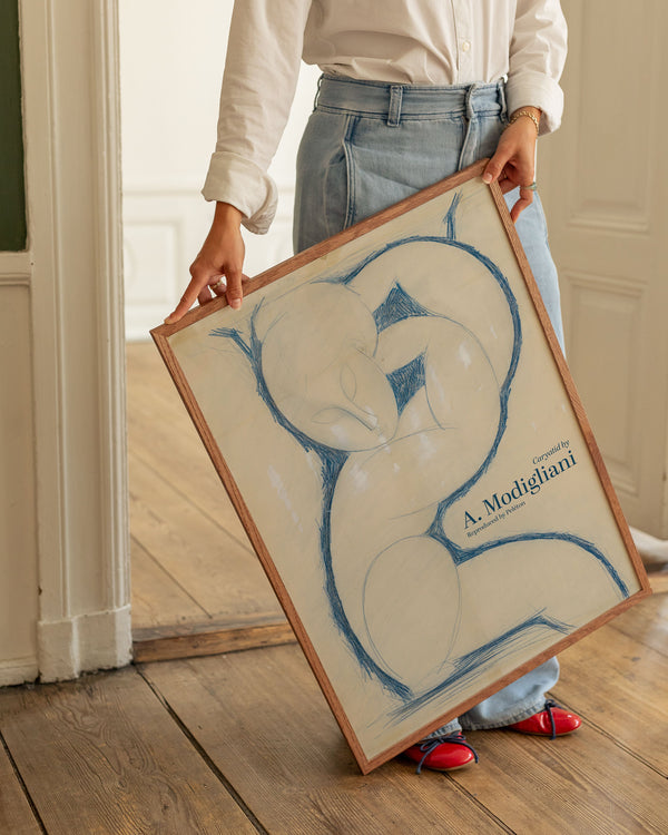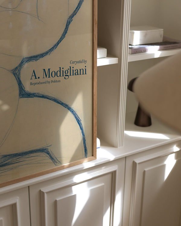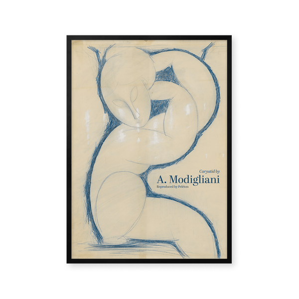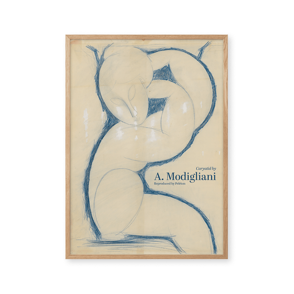 The art poster: “Caryatid” by the artist Amedeo Modigliani is an illustrated and sketched poster, recreated by Peléton. This poster by Amedeo Modigliani is characterized by the blue colors, and his surrealistic elongation of faces, necks, and figures. This poster is part of Peléton's vintage collection with museum layout. The art poster is produced on quality paper, with long durability, high opacity, and detailed color reproduction.