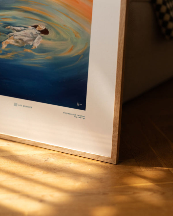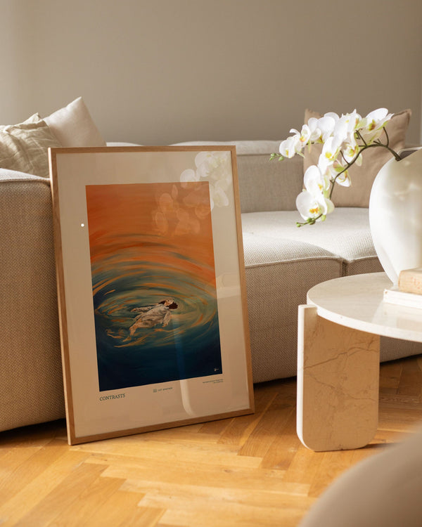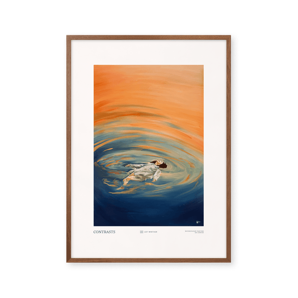 The art poster: “Contrasts” by the artist Lot Winther is a painted poster made exclusively for Peléton. The art poster described in Lot Winther's own words: "I have always loved contrasts. In nature, in light and dark, but most of all in us humans and our inner beings. Contrasts reflect my reconciliation with my own inner contrasts, the many extremes that make me the person I am. Chaos and ripples in the water, but also peace and contemplation." The art poster is produced on quality paper, with long durability, high opacity, and detailed color reproduction.