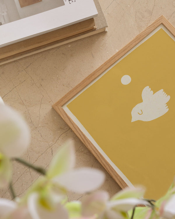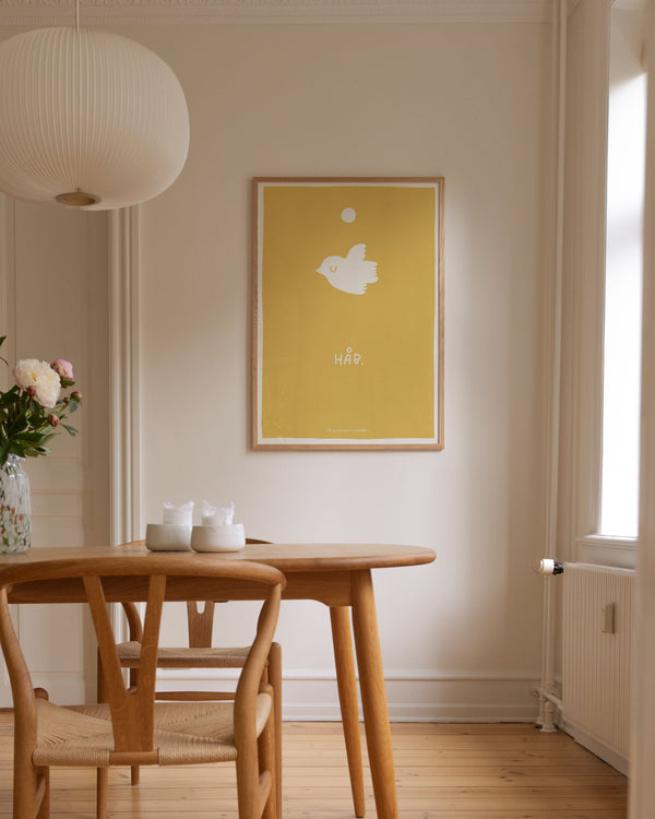 The art poster: “Pigeon - yellow” by the artist Line Jensen is an illustrated poster curated by Peléton. It has been significant for Line Jensen, the poster is open to interpretation.