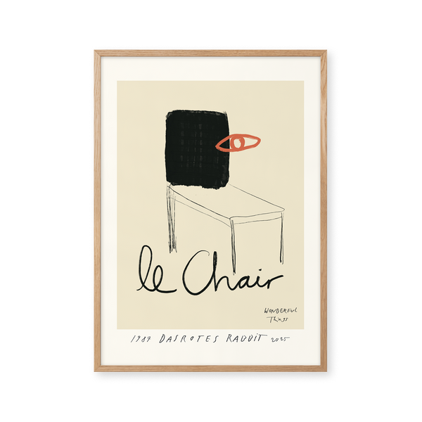 Kunstplakaten: "Eloise Chair” er skabt af kunstneren Das Rotes Rabbit og er en del af en kunstserie eksklusivt lavet til Peléton. Serien har karakter og personlighed og fungerer perfekt som et statement piece eller i samspil med de øvrige værker i serien. Farverne og den minimalistiske stil smelter sammen og skaber et harmonisk udtryk, der tilføjer dybde og elegance til ethvert rum.
