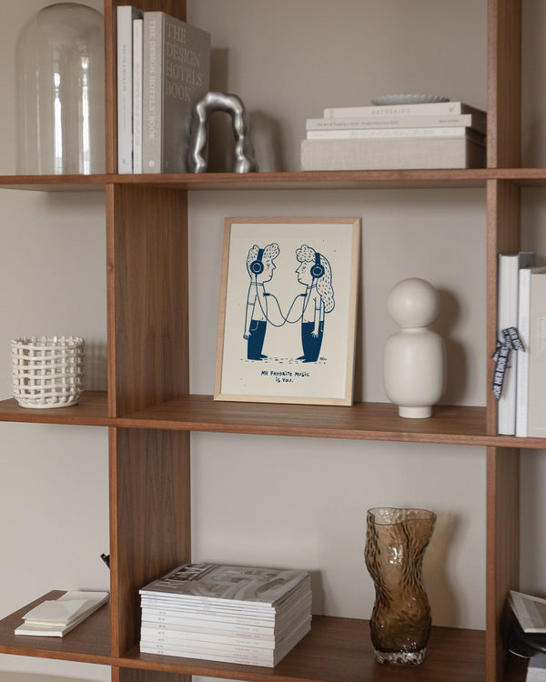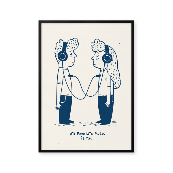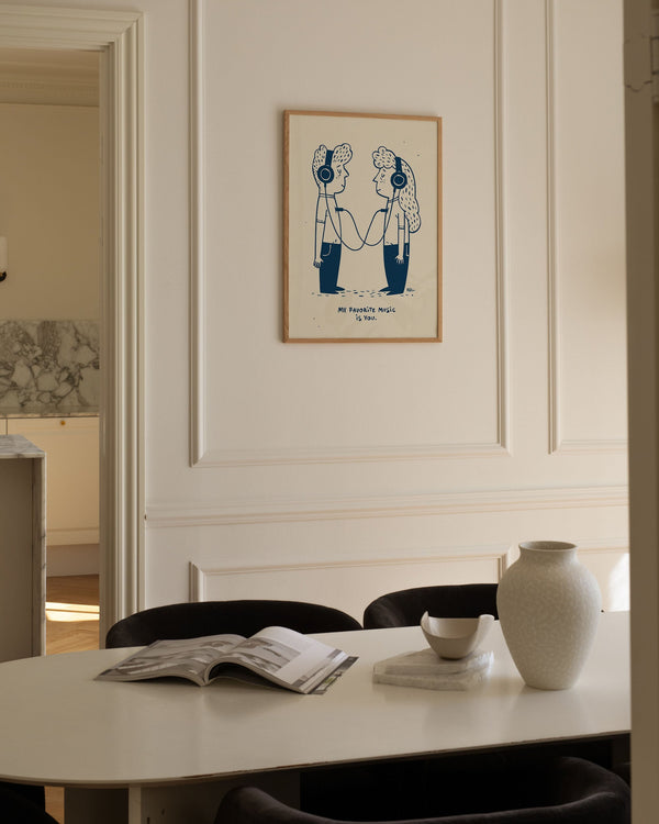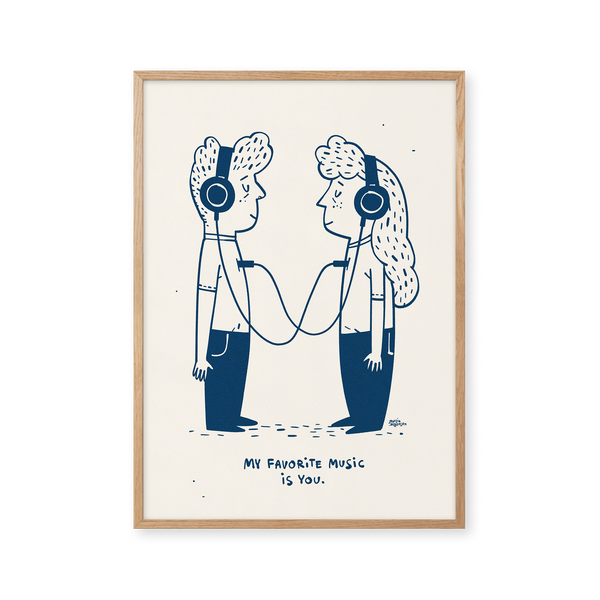 The art poster: “Favorite music” by the artist Martin Jørgensen is an illustrated poster curated by Peléton. It has been significant for Martin Jørgensen that the poster is open to interpretation.