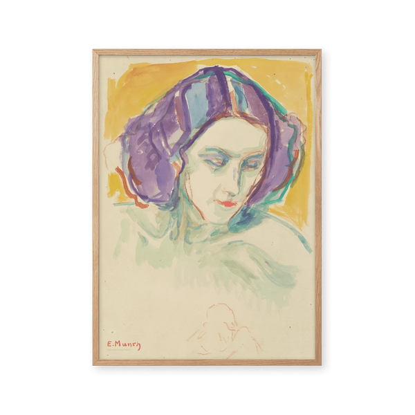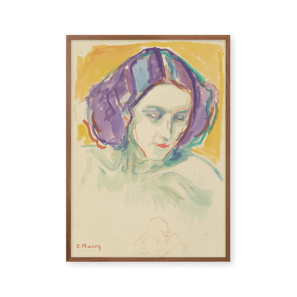 The art print: “Female head” by the artist Edvard Munch is a painted poster, recreated by Peléton. This poster series with Edvard Munch's unique art prints is characterized by his unique and recognizable style. This poster is part of Peléton's vintage collection with museum layout. The art print is produced on quality paper, with long durability, high opacity, and detailed color reproduction.