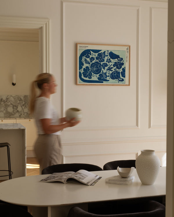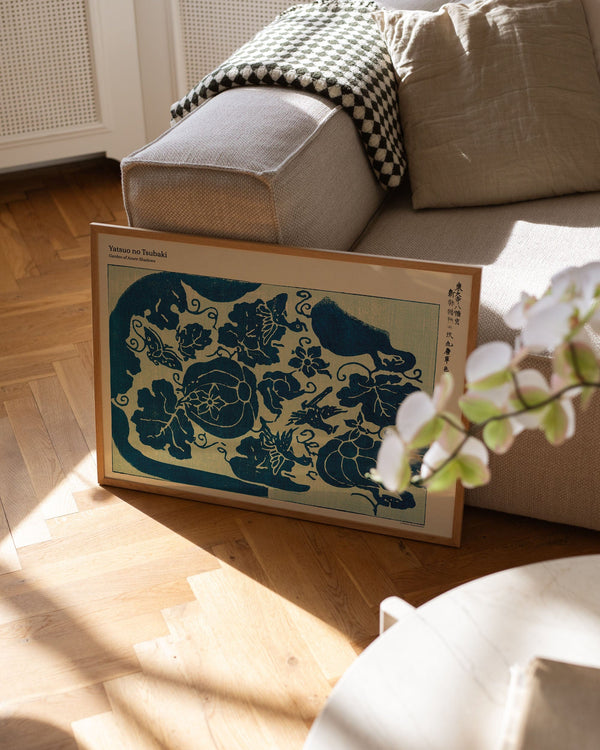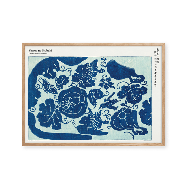 The art print: "Garden of Azure Shadows" by the artist Taguchi Tomoki is a print, which Peléton has recreated from his woodcut collection "Yatsuo no tsubaki". This print series with Taguchi Tomoki's art prints is characterized by his colorful woodcuts. This print is part of Peleton's vintage collection with museum layout. The art print is produced on quality paper with long durability, high opacity, and detailed color reproduction.
