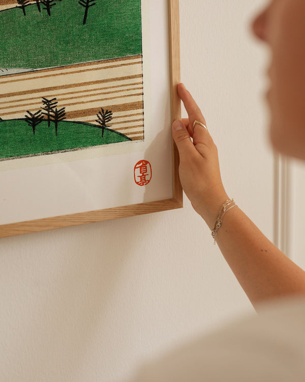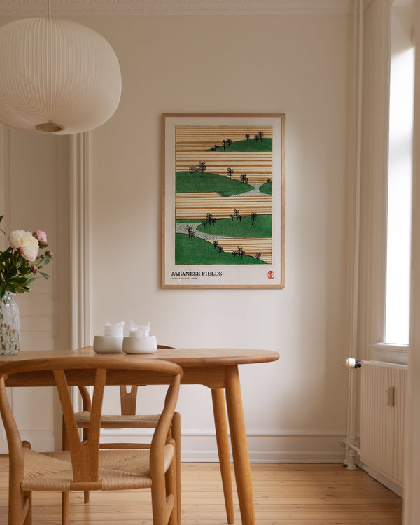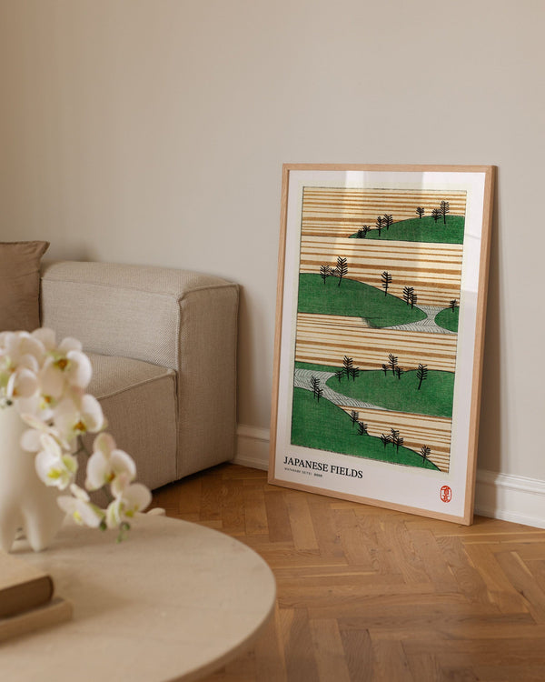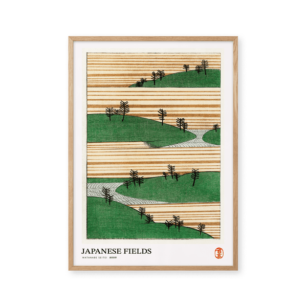 The art print: "Japanese fields" by the artist Watanabe Seitei is a poster that Peléton has recreated based on his iconic woodcuts. This poster series with Watanabe Seitei art prints is based on his most famous works. This poster is part of Peleton's vintage collection with museum layout. The art print is produced on quality paper with long durability, high opacity, and detailed color reproduction.