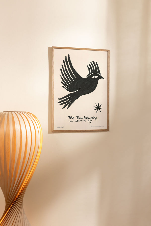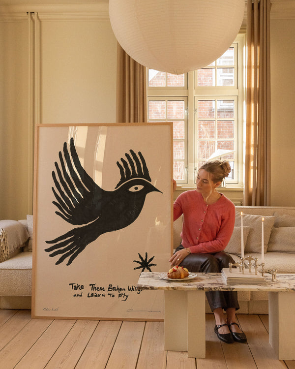 The art poster: “Learn to Fly” by the artist Eden Kalif is a graphically illustrated poster curated by Peléton. It has been meaningful to her that the poster is open to interpretation.