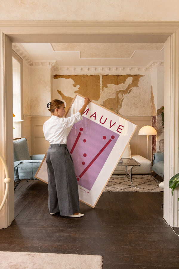 Kunstplakaten: "Mauve” af kunstneren Lauri Hopkins forener papirklip og collage i en sanselig og harmonisk komposition. Værket er eksklusivt skabt til Peléton og står åbent for fri fortolkning.
