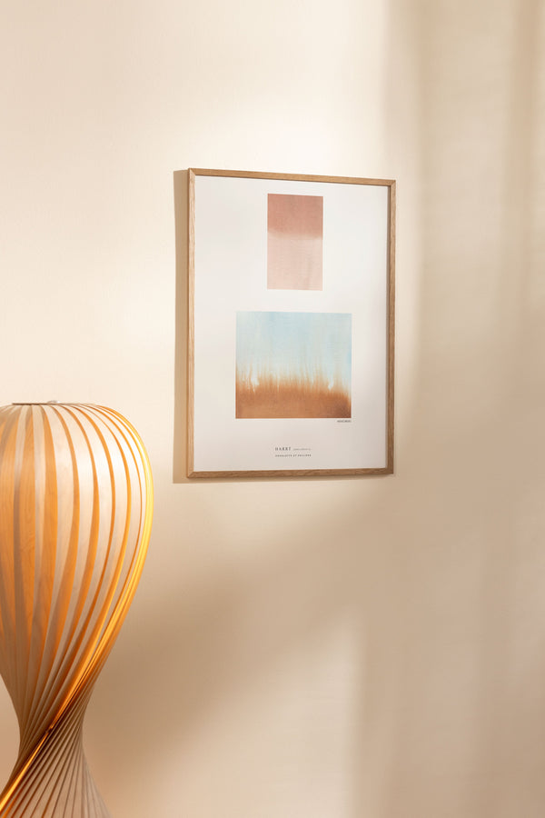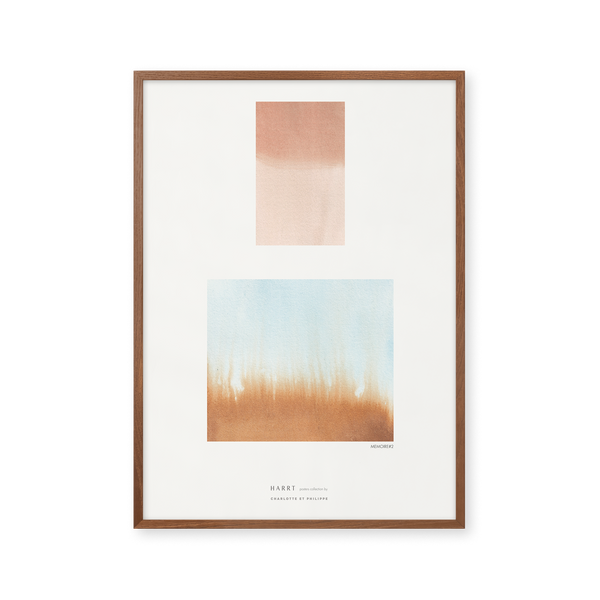 Kunstplakaten: “MEMOIRE 2” af kunstnerne Harrt Studio er en grafisk illustreret plakat der er eksklusivt lavet til Peléton. Det har været betydningsfuldt for dem, at plakaten står til fri fortolkning. Dette værk er en del af en samling af eksklusive kunstplakater der udtrykker minimalisme og enkelhed.