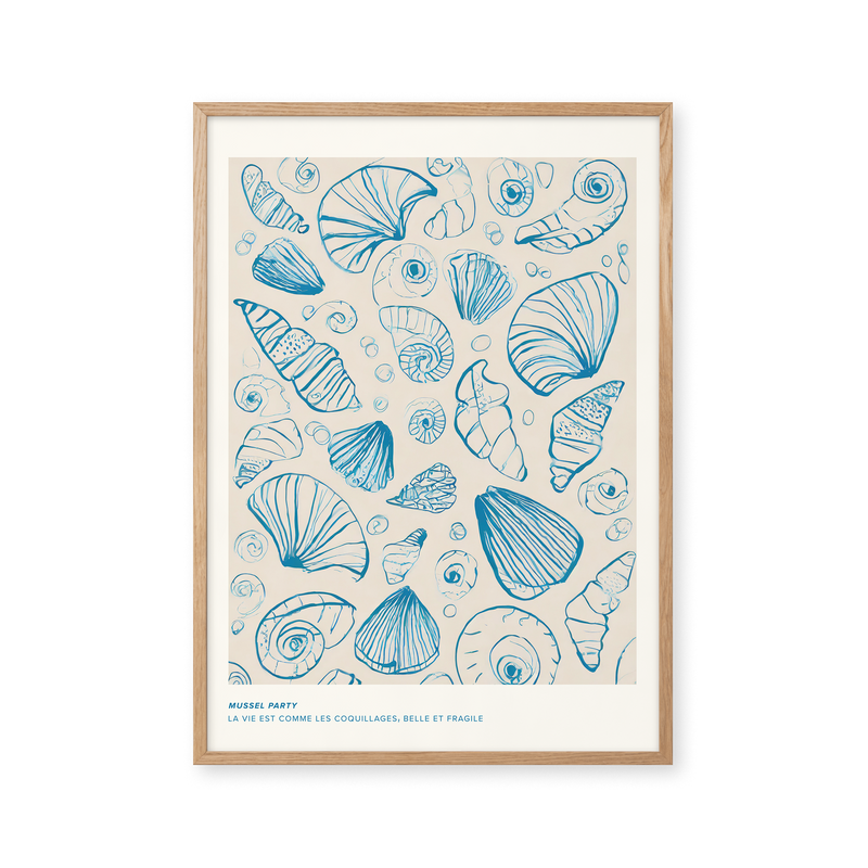 Kunstplakaten: “Mussel Party” af Peléton Studio er en del af Pelétons vintage kollektion med museums layout. Kunstplakaten er produceret på kvalitetspapir, med lang levetid, høj gennemtræk og detaljerig farvegengivelse.