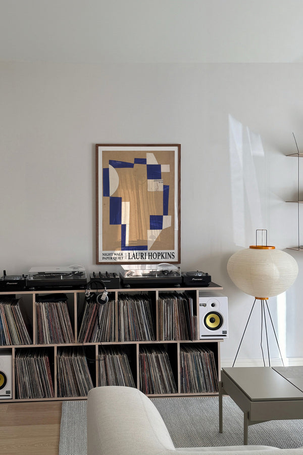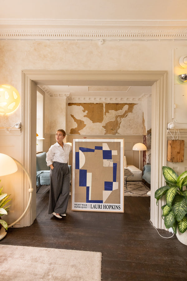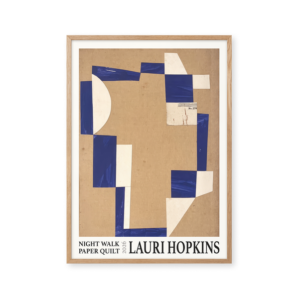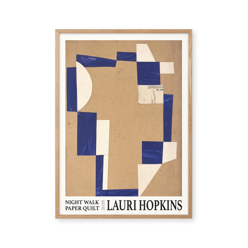 Kunstplakaten: "Night Walk Paper Quilt” af kunstneren Lauri Hopkins forener papirklip og collage i en sanselig og harmonisk komposition. Værket er eksklusivt skabt til Peléton og står åbent for fri fortolkning.