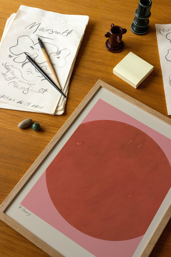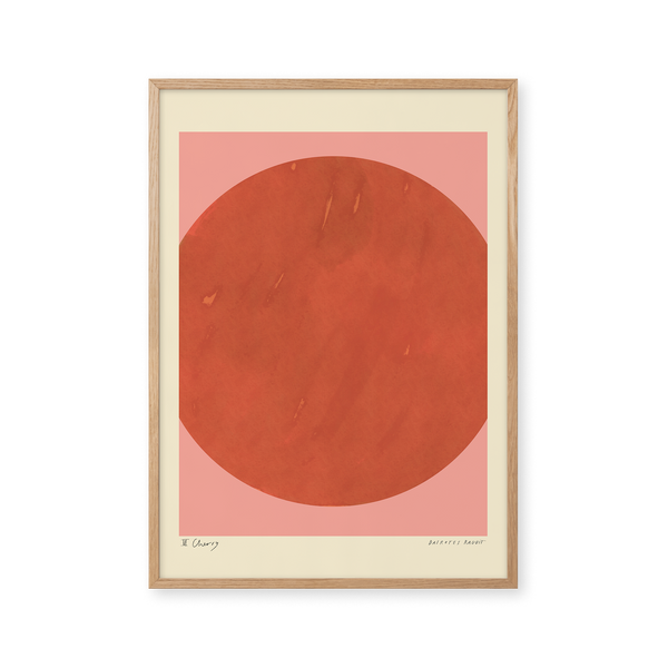 Kunstplakaten: "No. 6, Cherry” er skabt af kunstneren Das Rotes Rabbit og er en del af en kunstserie eksklusivt lavet til Peléton. Serien har karakter og personlighed og fungerer perfekt som et statement piece eller i samspil med de øvrige værker i serien. Farverne og den minimalistiske stil smelter sammen og skaber et harmonisk udtryk, der tilføjer dybde og elegance til ethvert rum.