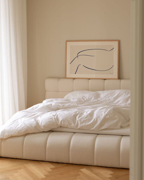 The Frames in oak are made of solid oak. The dark variant is stained to achieve a deep, warm tone, while the black Frame is made of black-painted pine with the same elegant profile.