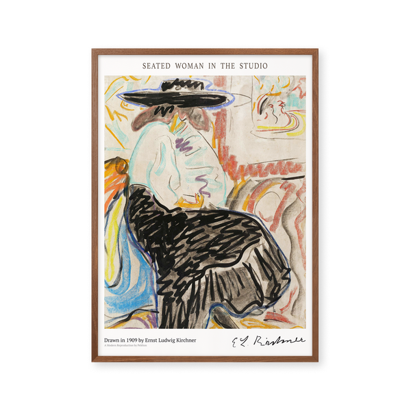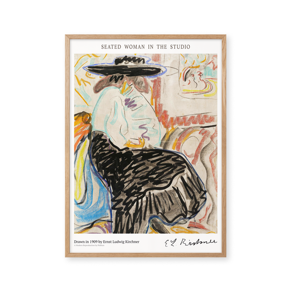 The art poster: “Seated Woman in the Studio” by the artist Mikuláš Galand is an abstract illustrated poster, recreated by Peléton. This poster is part of Peléton's vintage collection with museum layout. The art poster is produced on quality paper, with long durability, high opacity, and detailed color reproduction.