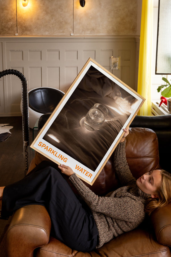 The art print: “Sparkling Water” by the artists Frederik Højfeldt is a graphically illustrated poster exclusively made for Peléton. It has been important to them that the poster is open to interpretation. This work is part of a collection of exclusive art prints that express minimalism and simplicity.