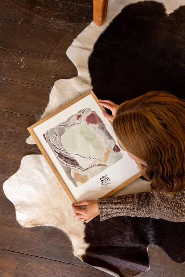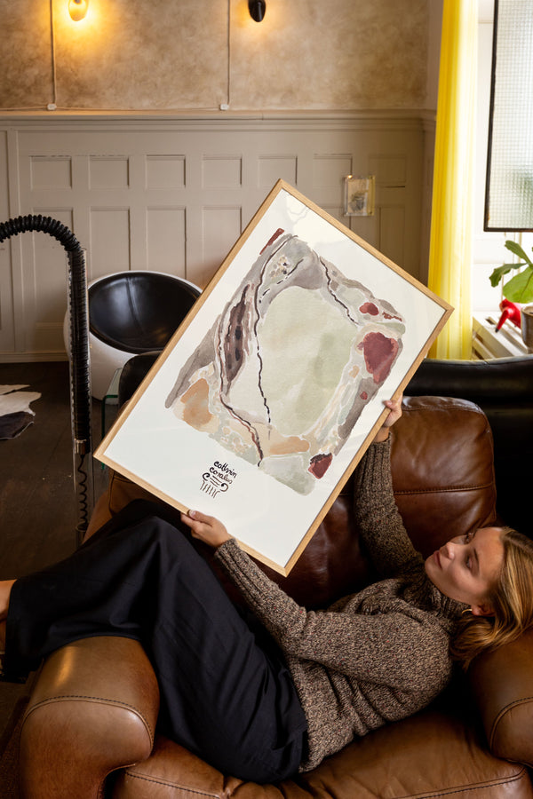 Cathrin Coralus kunstplakat "Stone Hues" er en del af en farverig kollektion skabt eksklusivt til Peléton. Motiverne hylder legende kompositioner, stærke farver og Cathrins finurlige billedunivers, hvor sentimentale temaer og en kunstnerisk lethed går hånd i hånd.