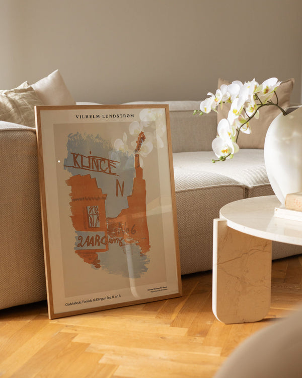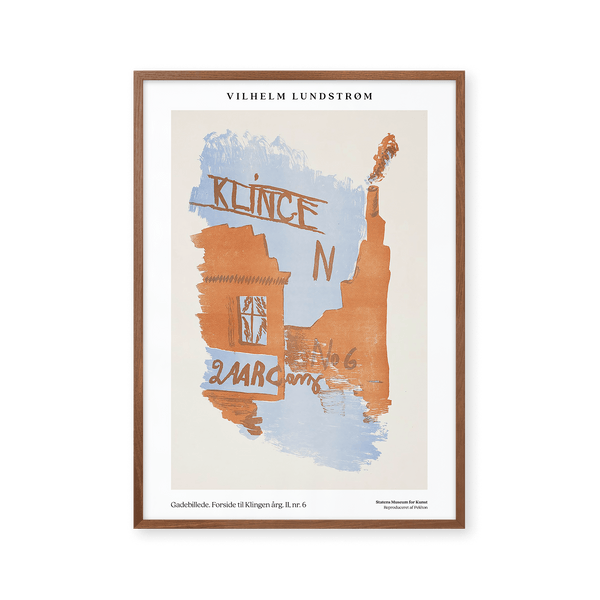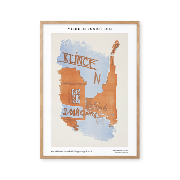 The art print: “Street Scene. Cover for Klingen” by the artist Vilhelm Lundstrøm is a painted poster recreated by Peléton. This poster series with Vilhelm Lundstrøm's experimental and geometric art prints is characterized by his colorful yet simple style. This poster is part of Peléton's vintage collection with museum layout. The art print is produced on quality paper, with long durability, high opacity, and detailed color reproduction.