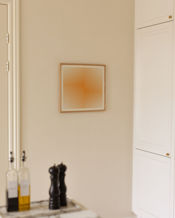 The art print: “Tangerine” by the artists Mie & Him is a graphically illustrated poster, exclusively made for Peléton. It has been important to them that the poster is open to interpretation. This work is part of a collection of exclusive art prints that express minimalism and simplicity.