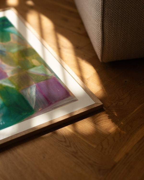 Our frames are made from high-quality materials and are available in solid oak, dark-stained oak, and black-painted pine. All frames come with genuine glass, while the largest sizes (70 × 100 cm and 100 × 140 cm) have 2 mm acrylic glass, which looks like glass but is lighter and more shatterproof (durable).