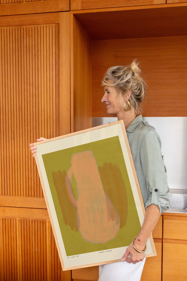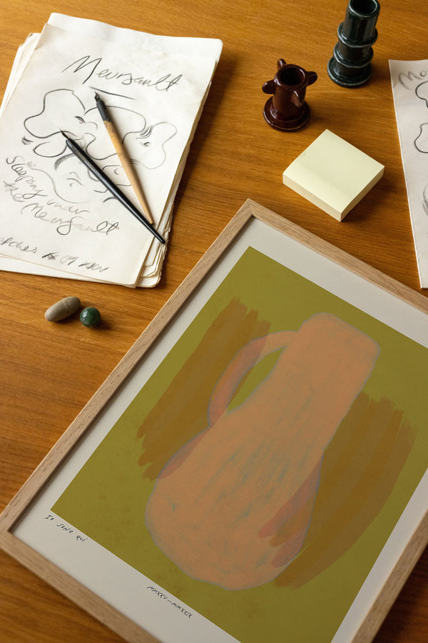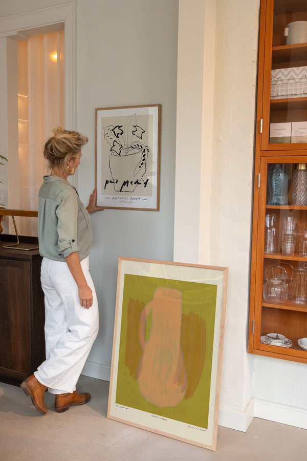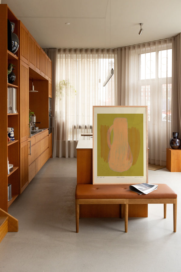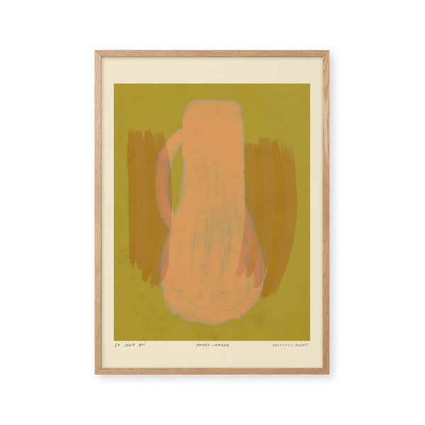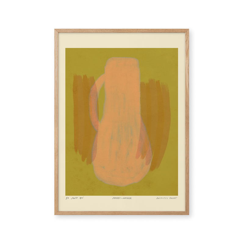 Kunstplakaten: "Vase, Lemonade” er skabt af kunstneren Das Rotes Rabbit og er en del af en kunstserie eksklusivt lavet til Peléton. Serien har karakter og personlighed og fungerer perfekt som et statement piece eller i samspil med de øvrige værker i serien. Farverne og den minimalistiske stil smelter sammen og skaber et harmonisk udtryk, der tilføjer dybde og elegance til ethvert rum.