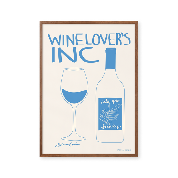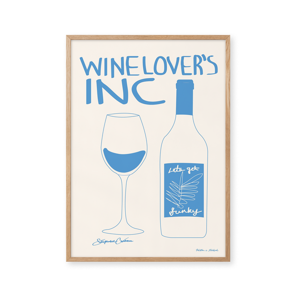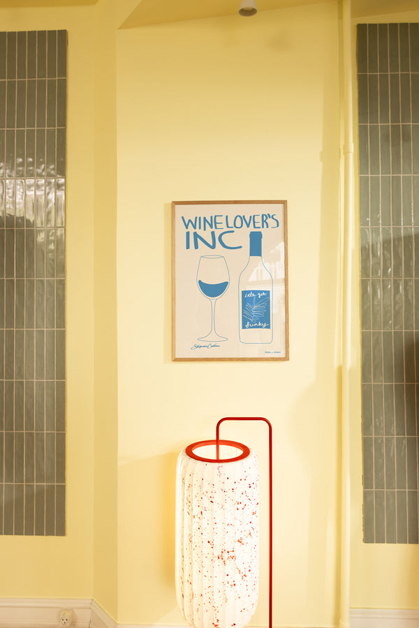The art poster: ""Wine Lover’s INC" by artist Stephie Cardona is a graphic illustrated poster exclusively made for Peléton, as part of the Hübsch x Peléton collection. It has been meaningful to her that the poster is open to interpretation.