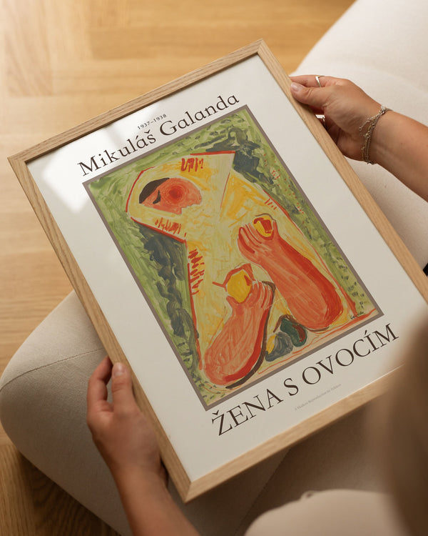 The art poster: “Zena S Ovocim” by the artist Mikuláš Galand is an abstract illustrated poster, recreated by Peléton. This poster is part of Peléton's vintage collection with museum layout. The art poster is produced on quality paper, with long durability, high opacity, and detailed color reproduction.