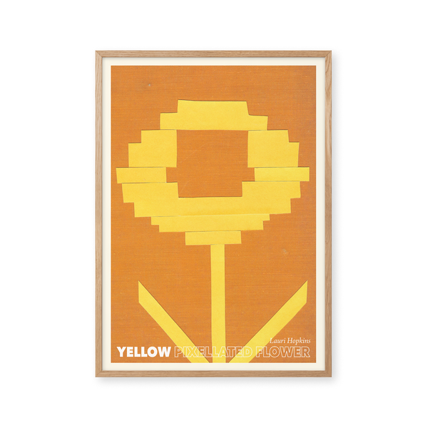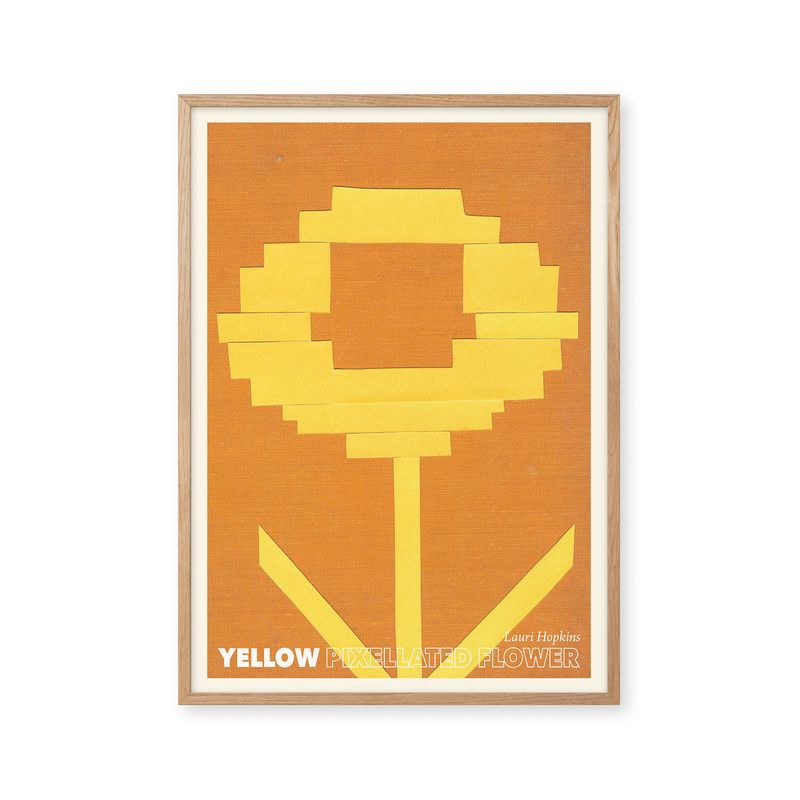 Kunstplakaten: "Yellow Pixellated Flower” af kunstneren Lauri Hopkins forener papirklip og collage i en sanselig og harmonisk komposition. Værket er eksklusivt skabt til Peléton og står åbent for fri fortolkning.